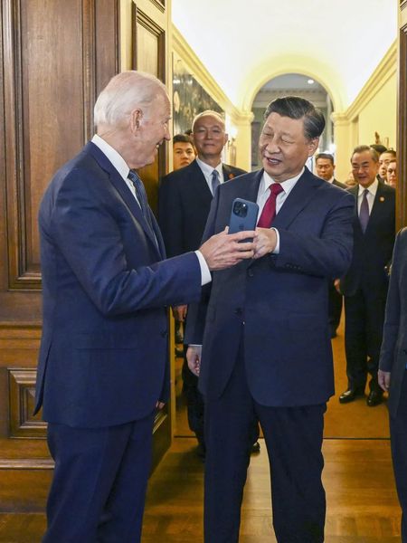 当地时间11月15日,国家主席习近平在美国旧金山斐洛里庄园同美国总统拜登举行中美元首会晤。