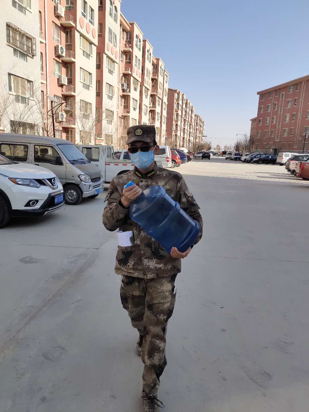 1月31日,水管处了解到二二四团防疫一线人手短缺后,处机关贾蒙菠、陈志军、白荣三名预备党员第一时间报名参加水管处志愿服务队,主动要求二二四团社区将自己分到条件最艰苦、工作最辛苦的社区防疫一线来锤炼党性。三名预备党员起早贪黑,倾心尽力做好疫情防控工作。他们及时对住户进行走访,掌握了小区住户总数、居家隔离的姓名、楼栋号、体温检测等,做到了底数清、情况明,对居家隔离的生活服务、心理疏导到位,赢得了小区居民,尤其是居家隔离户的广泛一致好评。据统计,三名预备党员自1月31日至2月9日,走访150余户次,与住户签订防控疫情承诺书87份,为隔离户送米送面送油送菜送药50余次,为20余户代购水、电、气,帮隔离户扔垃圾70余次,给空置房屋贴封条30余户,为隔离户楼梯口及进户门消毒34次,在小区大门值守27天次,劝退欲外出人员60余人次。