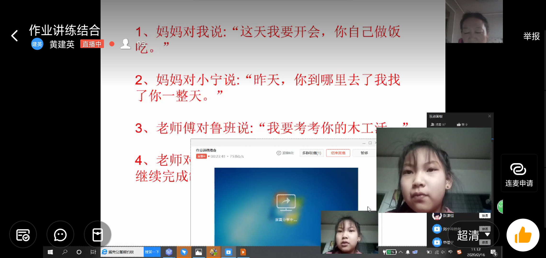 五团中学五(4)班黄建英老师开起直播,为孩子们答疑解惑