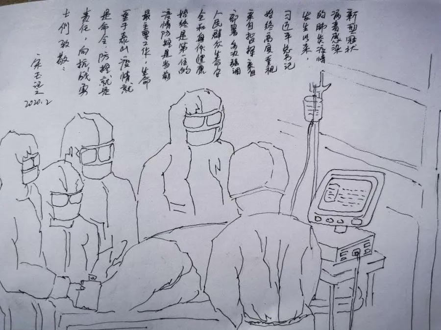 “我平时也喜欢绘画,看到很多医护人员冲锋在一线,心中很感慨,我就想着用手中的画笔记录下各行各业对抗疫情的生活。”宋玉说。