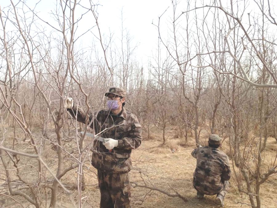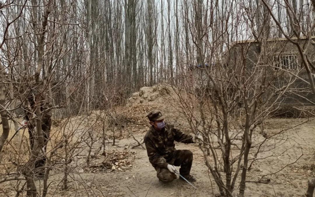 村民枣树种植密度普遍过大,严重影响了红枣的品质,同时也影响了村民的收入。针对这一情况,工作队选择村民阿里木·买提喀斯木的22亩枣树地作为示范地,由队员们亲自下地,开展了为期4多天的枣园改造和树形整治工作,为本村村民提供直观的技术参考与借鉴。