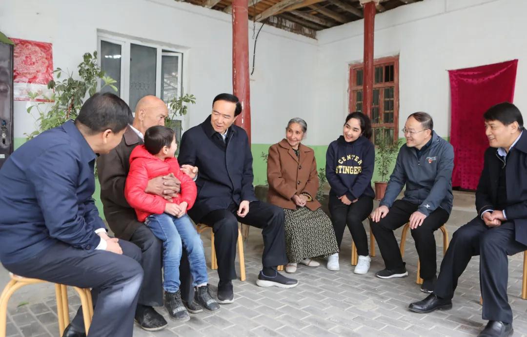 3月15日至17日,自治区党委书记陈全国深入喀什地区伽师、英吉沙、叶城、莎车和克孜勒苏柯尔克孜自治州阿克陶等今年拟摘帽深度贫困县,专题督战督导脱贫攻坚工作。这是3月16日,陈全国在英吉沙县芒辛镇恰克日库依村建档立卡贫困户玉素甫·艾麦提家中,与一家人亲切交谈,详细了解生产生活等方面情况。新疆日报全媒体记者崔志坚摄