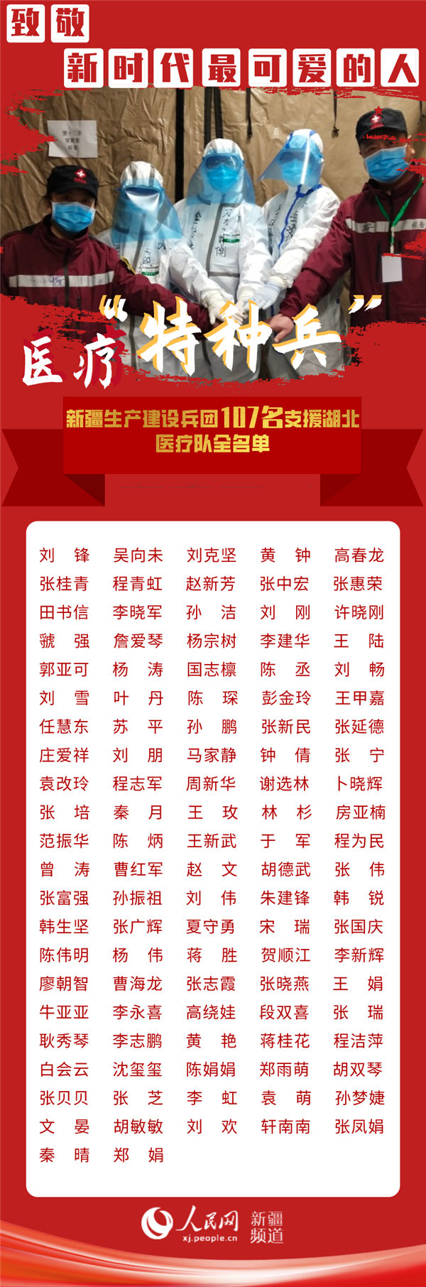 新疆生产建设兵团107名支援湖北医疗队全名单