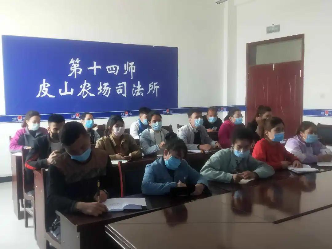 4月3日,皮山农场司法所举办了皮山农场第一届“法律明白人”培训班。