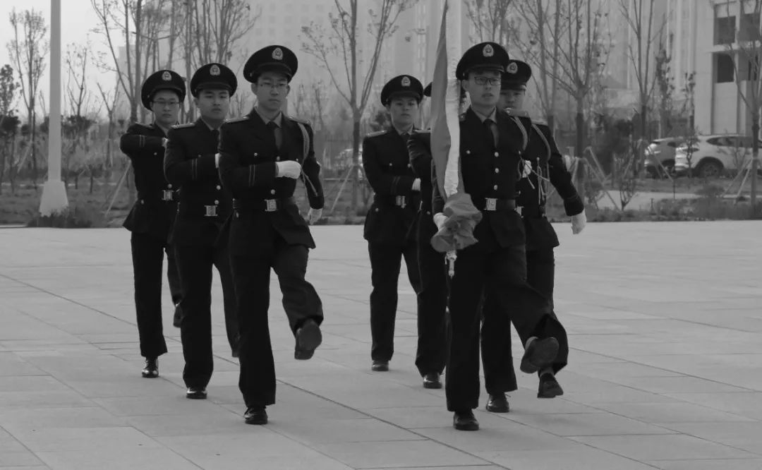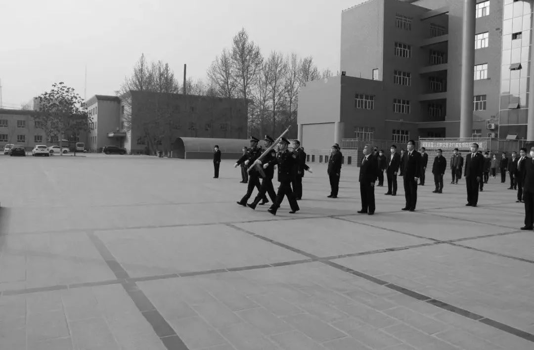 9时55分,在十四师昆玉市机关楼前,师市仪仗队迈着铿锵的步伐,安旗、展旗、立正、敬礼……升旗手展臂一挥,五星红旗在庄严的国歌声中慢慢升至杆顶。随后下半旗仪式开始,国旗缓缓降至旗杆三分之一处。