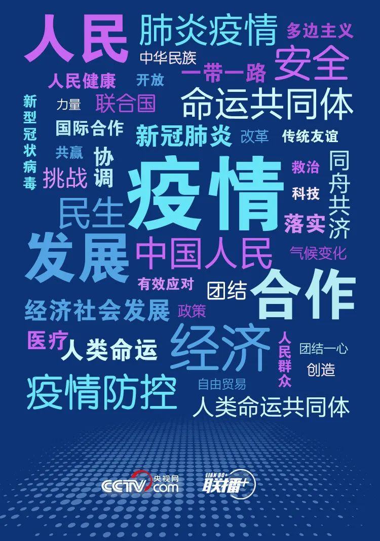 在习近平关于新冠肺炎疫情的外事讲话和慰问电中,“合作”也是高频词之一。与之相关联的“同舟共济”“团结”“协调”“国际合作”等也多次出现。