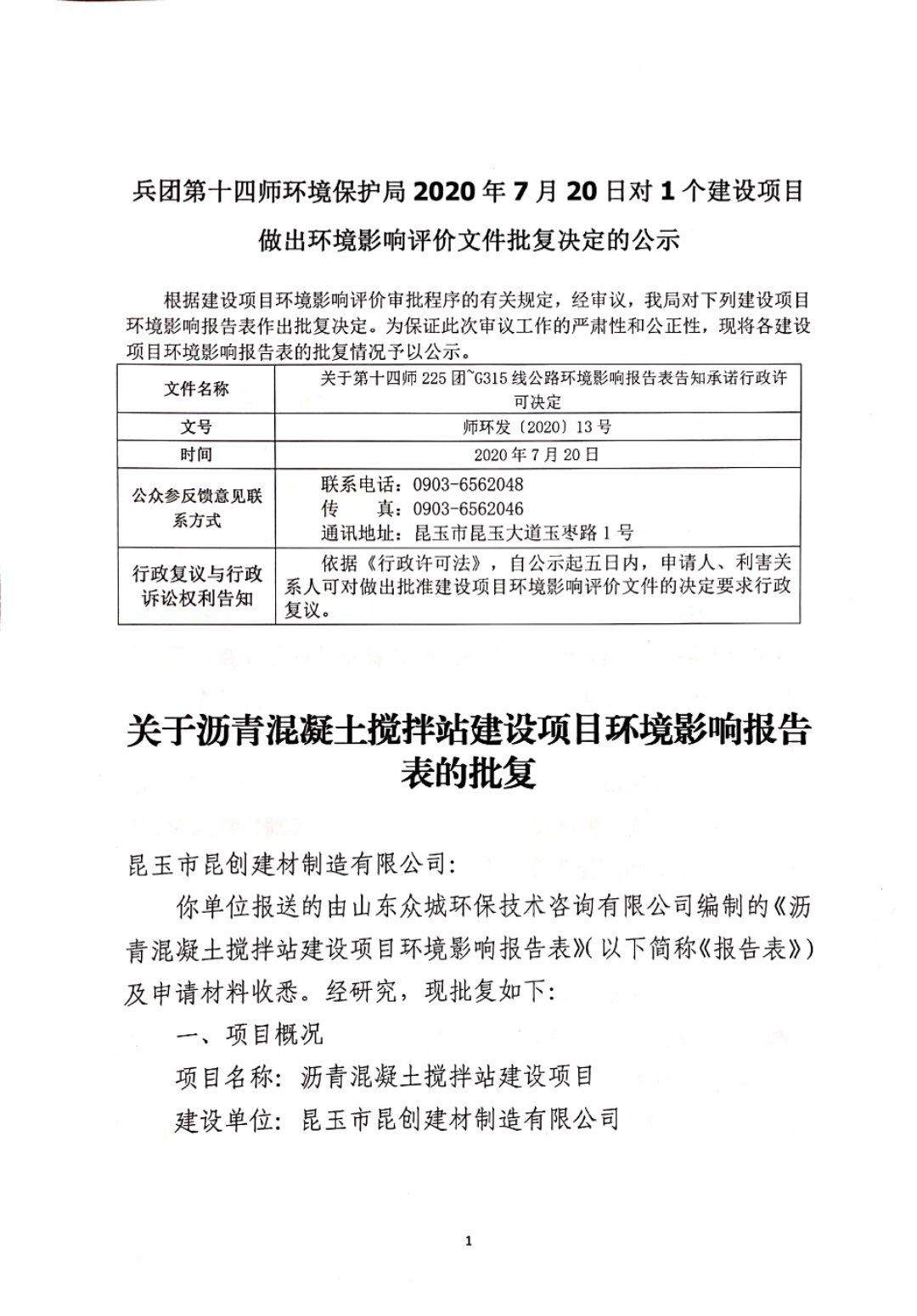师市生态环境局关于7月20日对1个建设项目做出环境影响评价文件批复决定的公示