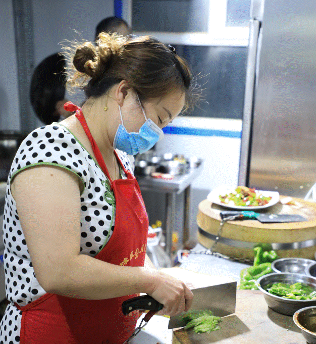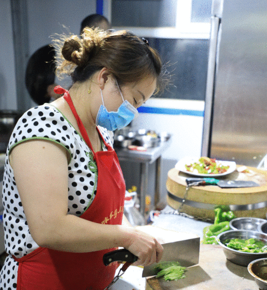 刘林林餐馆得益于在这里打工创业的工人们,随着客人越来越多,她和老家带来的厨师两个人已经忙不过来,村“两委”成员得知这种情况后,给他在村里找了两个待业青年在这里当服务员,旁边拉依苏村的建档立卡贫困户吐送江·麦麦提一直想学厨师,得知刘林林这里招聘厨师,到他这里学习厨艺,不但每个月有2500元的收入还学会了很多道菜的做法,吐送江·麦麦提打算学会之后自己开一家炒菜拉面馆。