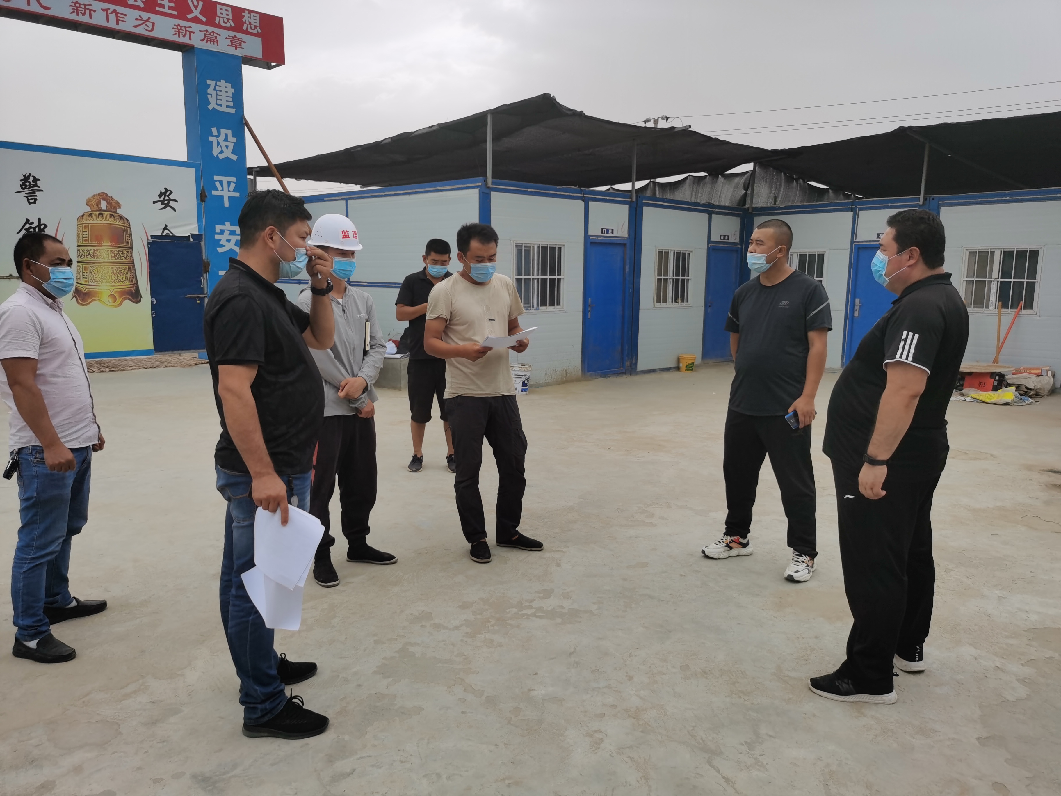 近日二二五团团党委副书记、副政委玉苏普江·玉努斯联合国土分局、经济发展办公室基建口等相关负责同志组成临时联合检查组,到辖区各项目部现场指导疫情防控工作。