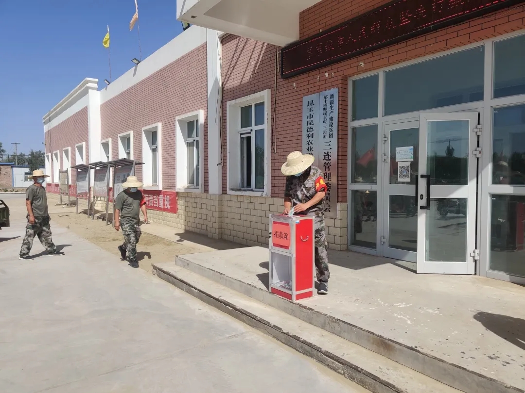 8月17日,在十四师昆玉市二二四团三连活动广场上,大家整齐列队,纷纷为困难职工杜兵兵捐款献爱心,温暖杜兵兵前行之路。