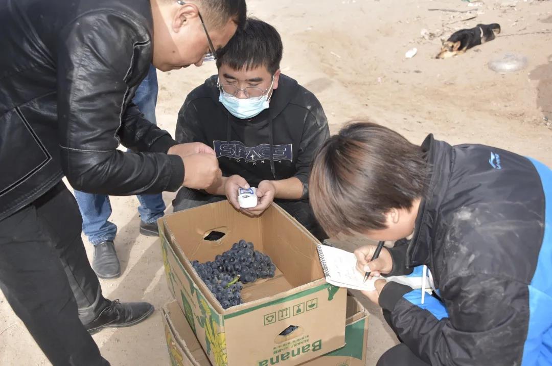 此次主要对“夏黑”葡萄品种的秋季第二熟进行田间勘验,勘验现场,首先由项目负责人、新疆农垦科学院葡萄研究室主任对项目的实施情况进行介绍,并对项目相关情况进行解疑释惑。专家组一行对项目执行中的葡萄单产、亩产、单粒重、糖度等相关指标进行了现场勘验。