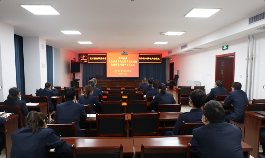 昆玉税务局组织观看中国人民志愿军抗美援朝出国作战70周年大会实况。(刘晓璇)
