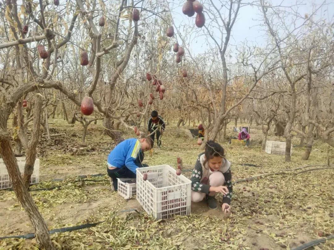 深秋时节,皮山农场大地枣香四溢、瓜果飘香。近日,该场6.4万余亩玉枣开始陆续采摘。