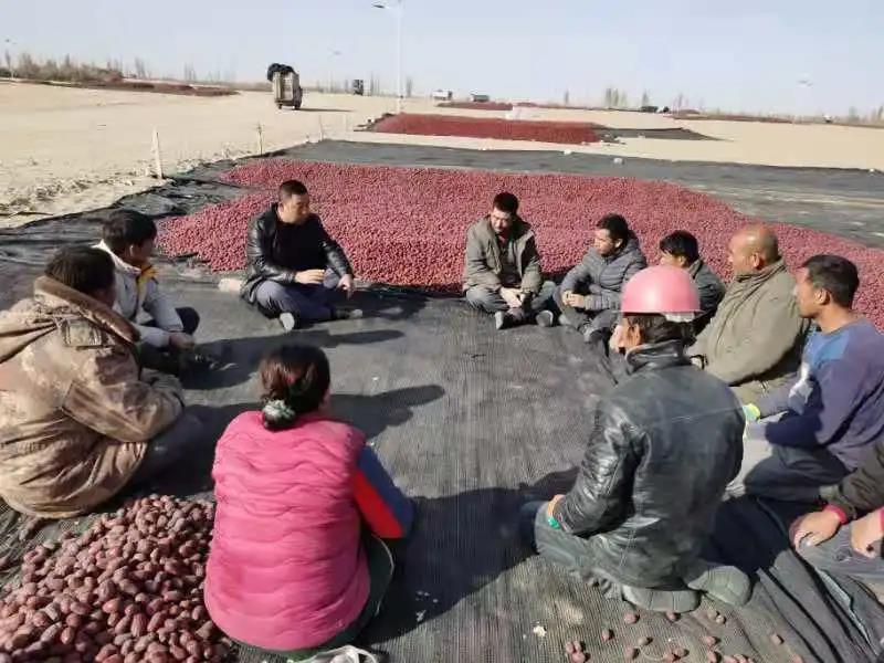 谈及线上销售,石立平有自己的想法。他说:“皮山农场有阿吉庄园,旅游资源丰富,又有最优质的灰枣。近些年,在党的领导下,职工也住进了新房子,路灯也装好了,基础设施也在不断的完善中。等整体发展起来,可以在连队搞观光旅游,借助自媒体宣传、直播,让游客通过打枣、晒枣、筛枣等享受‘枣’趣,让职工通过展览旅游奔小康”。