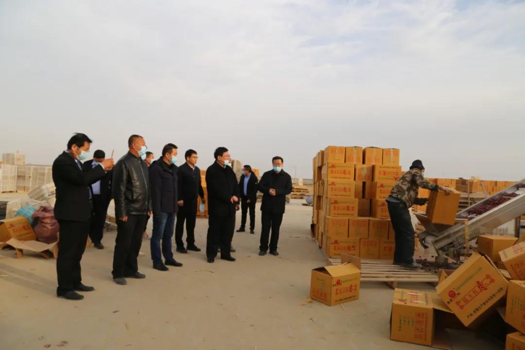 丁翊强一行深入企业挑选车间、清洗车间、成品库房和原料堆放处,查看红枣的分拣、清洗、包装、运输过程。丁翊强详细询问了公司的库存、融资、物流以及消防安全等方面的现状与困难,并提出指导意见。他强调,要充分挖掘枣文化,丰富展陈形式,提高创新性,把枣文化做到极致,打造建设好枣文化产业园。要钻研红枣种植技术,丰富品种,优化布局,将闲置土地打造成具有观赏性的“百枣园”,结合农家乐,吸引市民观光采摘,促进企业创收。要充分利用电商平台,做好互联网营销,加大电商营销力度,扩大销量,提高业绩。