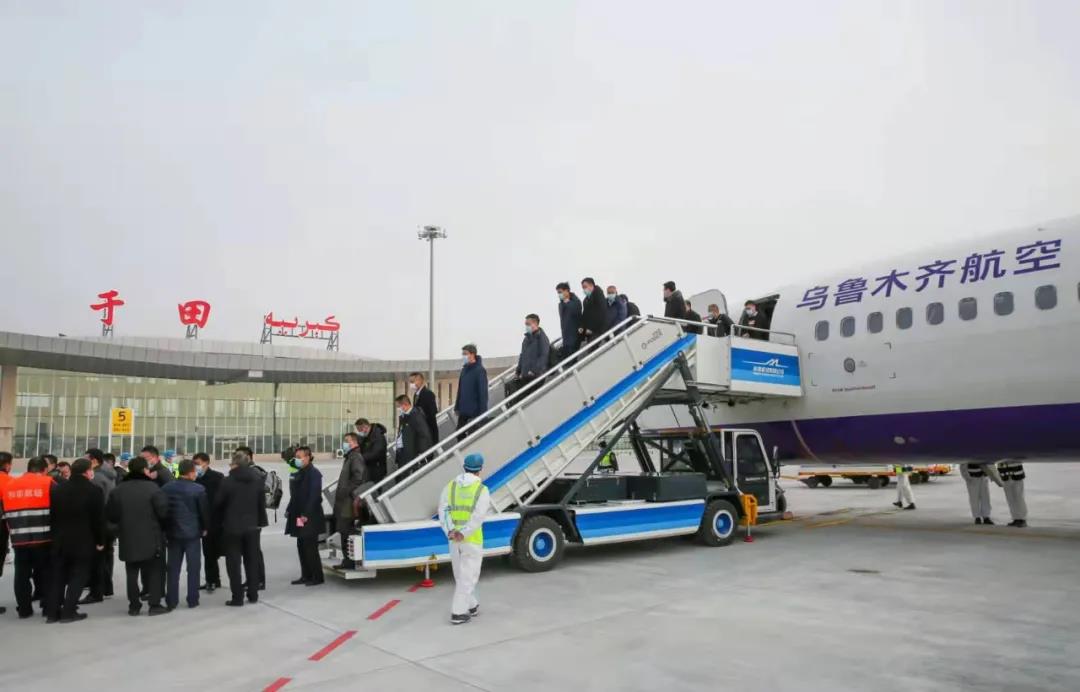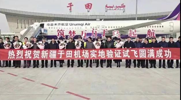 承担试飞任务的乌鲁木齐航空UQ2001次航班降落在于田万方机场