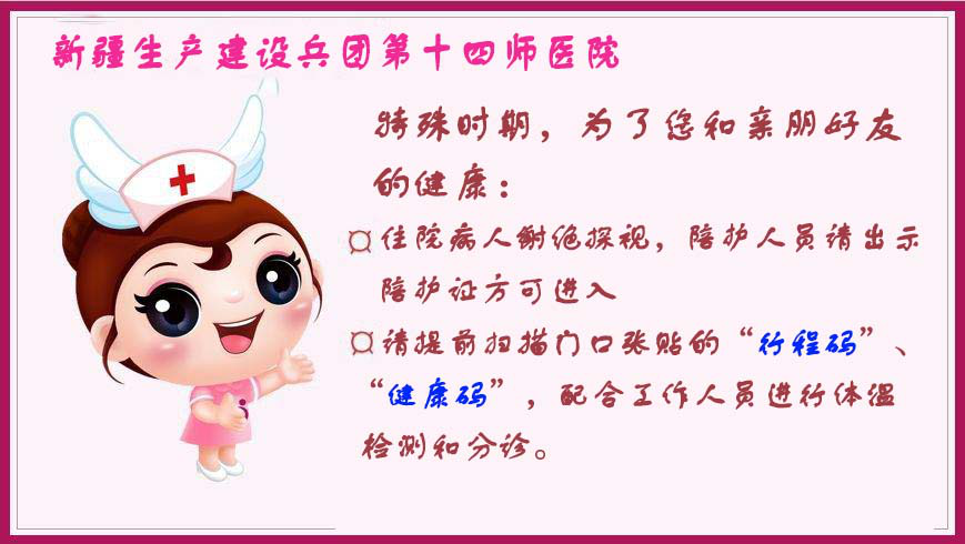 4、有发热及呼吸道症状者,请严格遵守第十四师医院发热患者就诊流程,前往发热门诊就诊。
