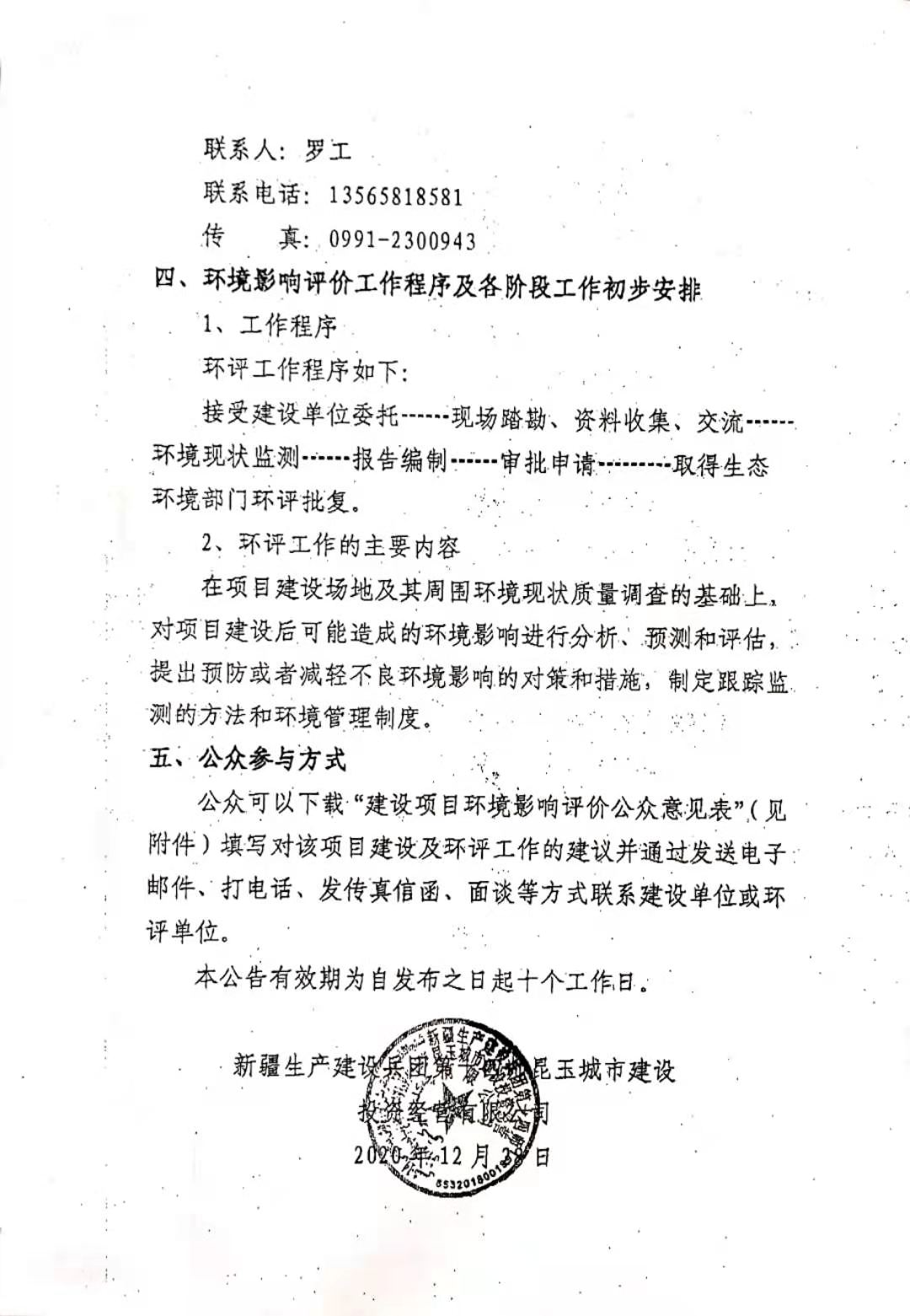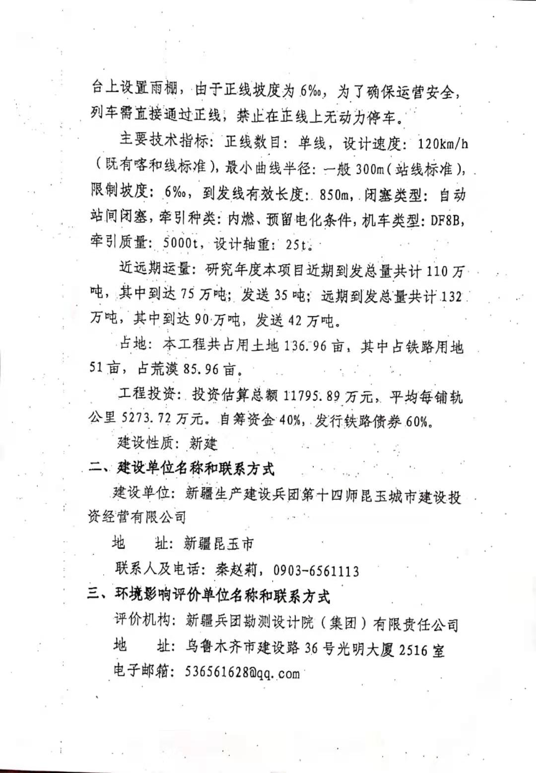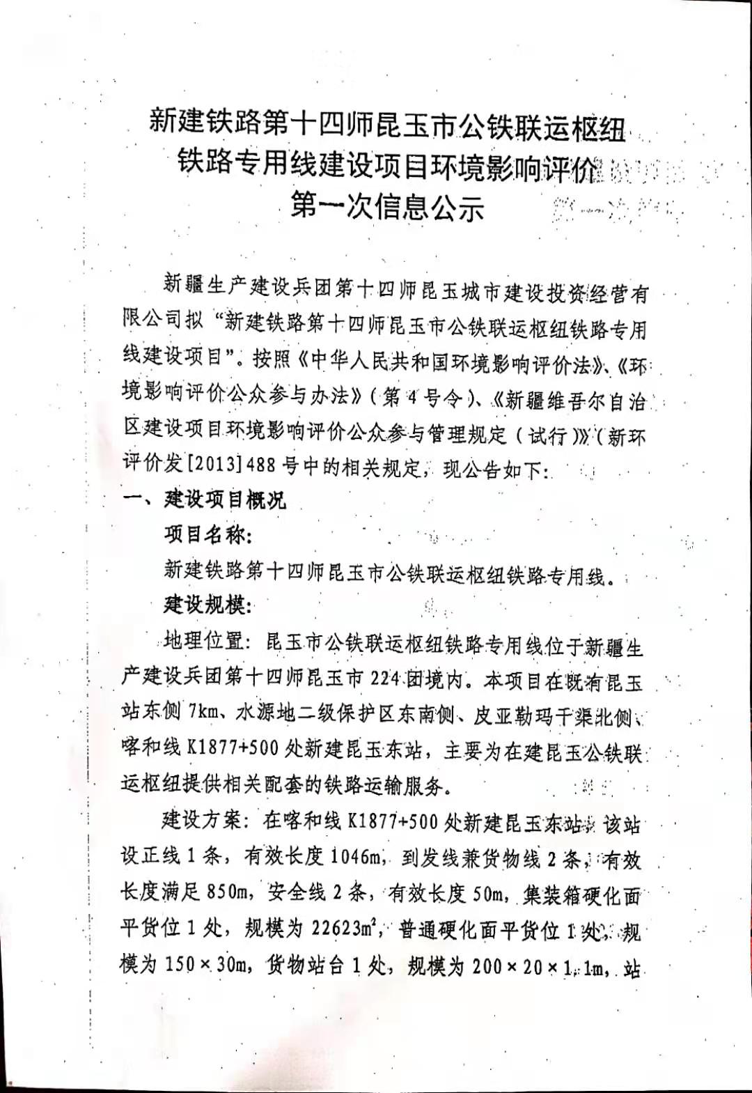 新建铁路第十四师昆玉市公铁联运枢纽铁路专用线建设项目环境影响评价第一次信息公示