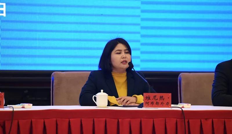 麦麦提尼亚孜·依明尼牙孜正在回答记者提问