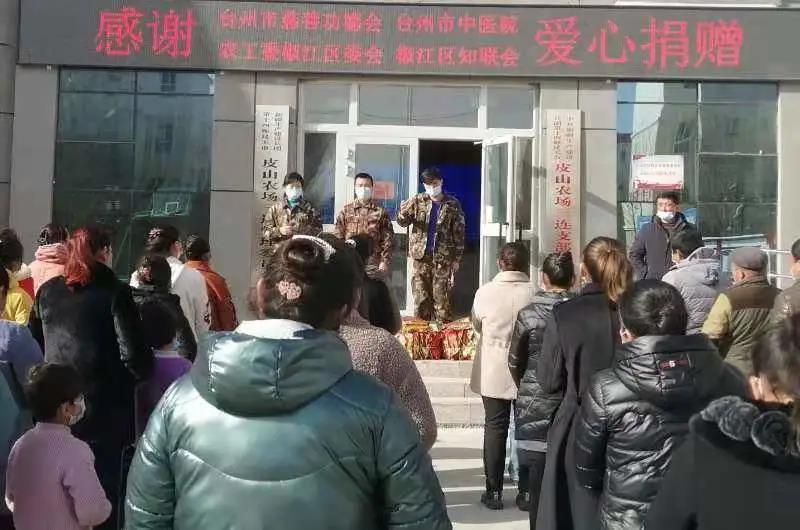 在皮山农场三连办公楼电子屏上滚动着“感谢台州市慈善功德会、台州市中医院、农工党椒江区委会、椒江区知联会爱心捐赠”的字幕,这是远在千里之外的爱心单位、爱心人士为该连职工群众送来的“爱心礼物”。兵团总工会驻皮山农场三连“访惠聚”工作队正在进行发放仪式,职工群众依次领取爱心礼物,领到礼物的职工群众脸上都洋溢着笑容。