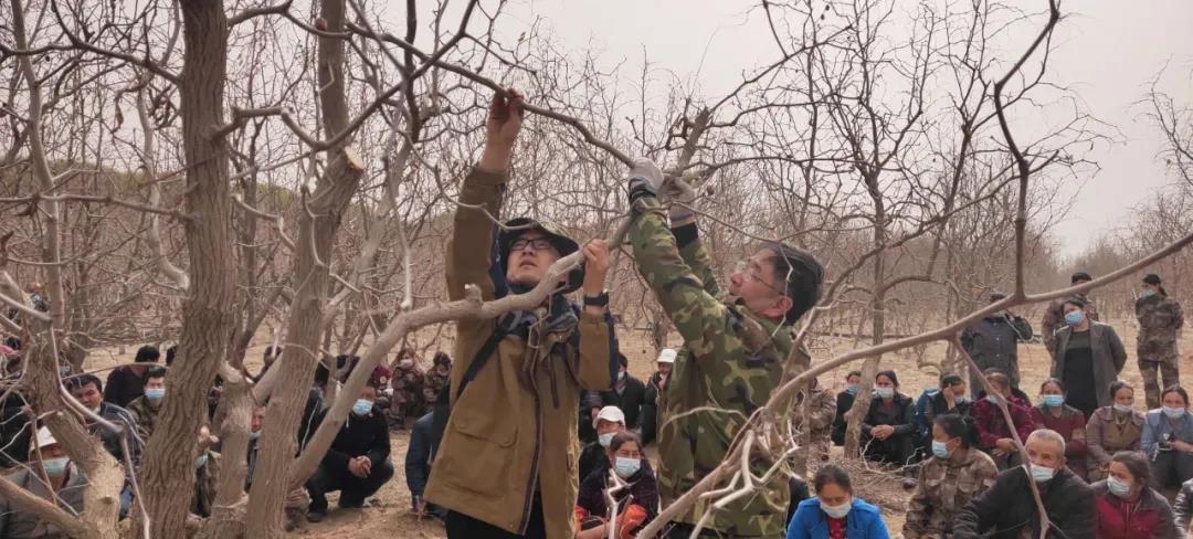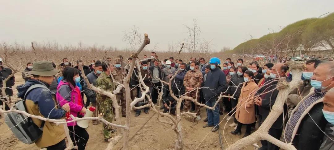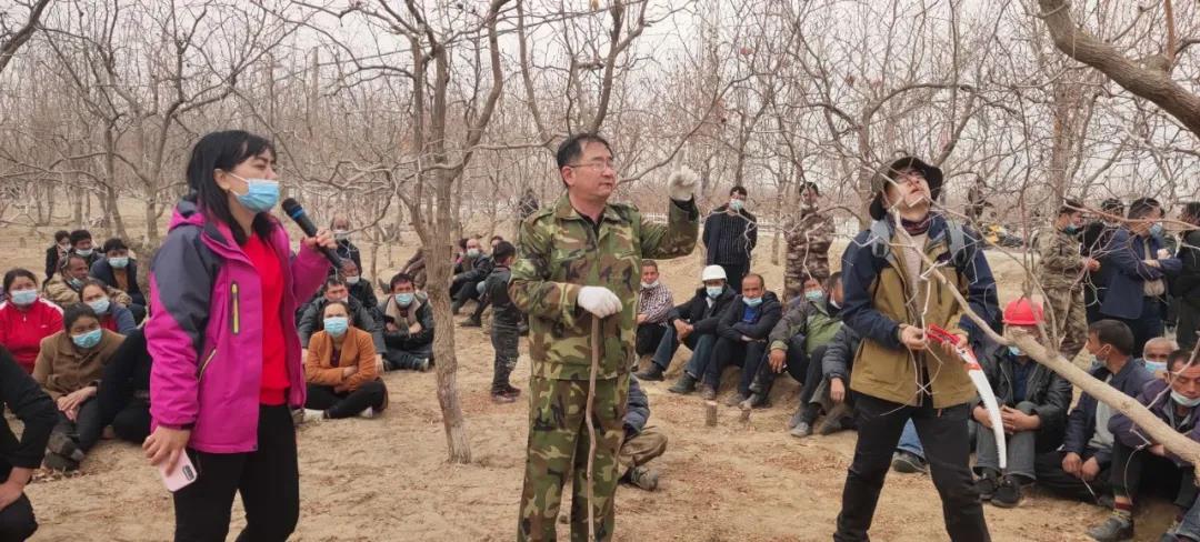 张琦教授现场为职工群众讲解了红枣树疏密、降高、施有机肥、统一品种“四项措施”的具体实施方法和石硫合剂配比、喷洒等病虫害防治知识,这种“院校+农场+职工”的科技服务模式,使农场两万余名职工群众直接受益。