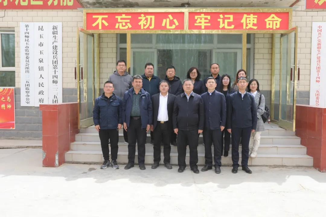 4月9日,北京亦庄文化集团副总经理闫炜带队来我团考察调研。团党委书记、政委武杰、团党委副书记、团长吾布力卡司木·司拉木,及相关部门领导陪同。考察组一行先后参观考察二二五团湿地、新团部建设、林果业、 中学等情况。