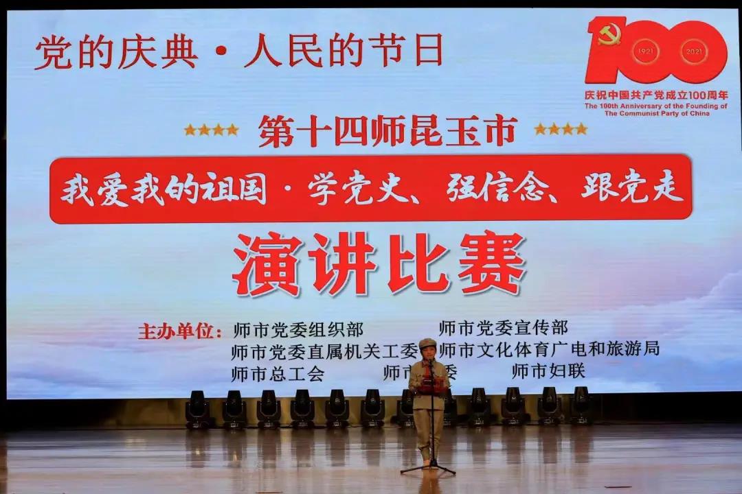 4月21日,党的庆典·人民的节日——第十四师昆玉市“我爱我的祖国·学党史、 强信念、跟党走”主题演讲总决赛在昆玉市文化馆举行。师市党委常委、副政委,宣传部部长王建军出席活动并致辞。