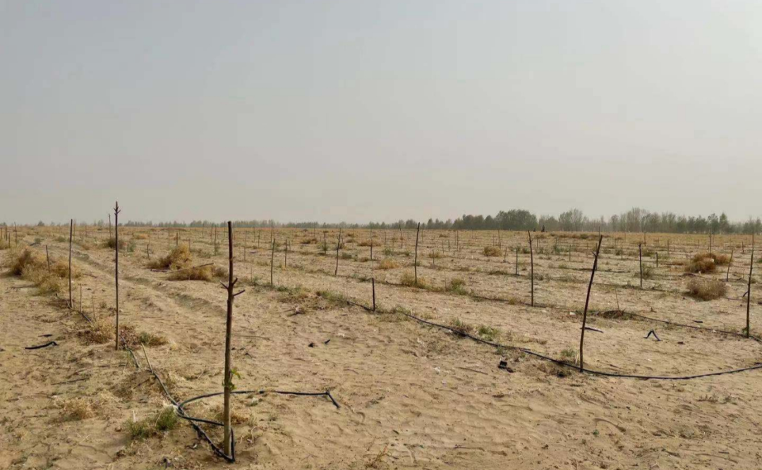 来到二二四团山桐子种植项目基地,今年新种下的几百亩山桐子已经有不少枝条冒出了绿芽,这片种植基地已经由去年的400亩扩种到了今年的1000亩。