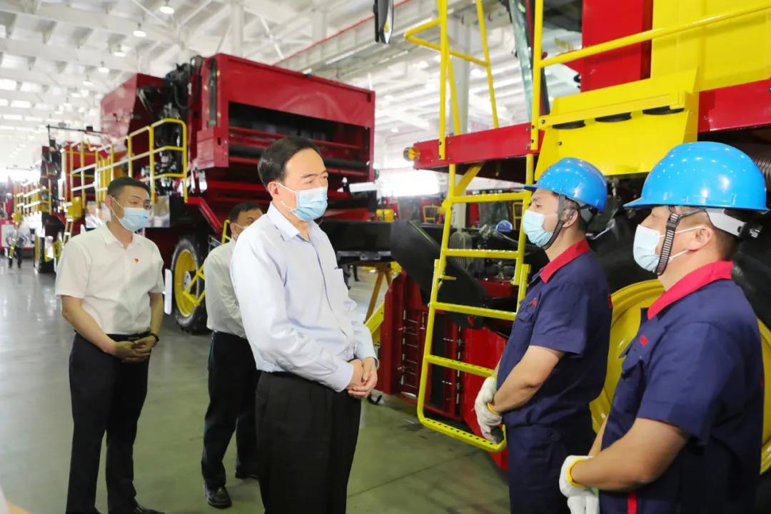 乌苏市的一家农业机械生产企业拥有多项完全自主知识产权专利,填补了国内空白。陈全国走进生产车间,了解生产销售、助力农业发展等情况,勉励企业不断提升自主研发生产能力,努力做大做强,为促进新疆农业现代化提供有力支撑。