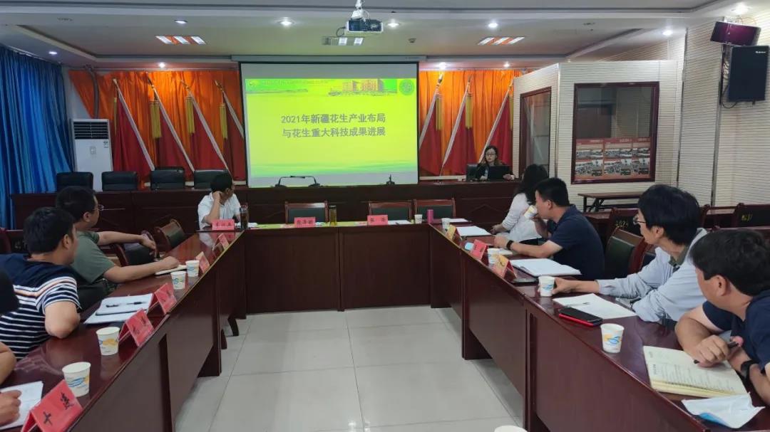 下午,张雨委员一行在皮山农场机关楼组织召开了座谈会,考察组郭芹博士重点介绍了2021年新疆花生产业布局及花生重大科技成果进展和有关工作开展情况,并就农场种植花生存在的问题进行了交流解疑,达成广泛共识。