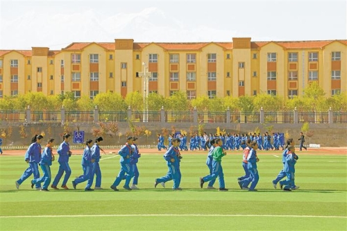 一牧场中学学生在上体育课(摄于5月11日)。 兵团日报常驻记者 刘秋月 摄