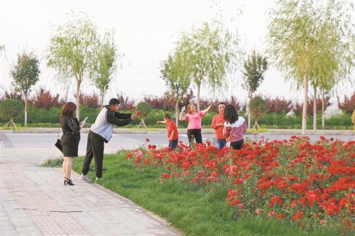 游客在昆玉河景观区游玩、拍照留念(摄于5月1日) 兵团日报常驻记者 刘秋月 摄