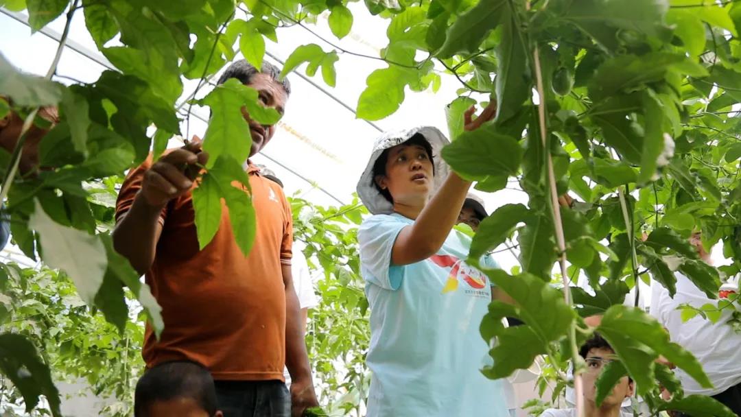 走进石河子大学今年在225团重点试种的百香果设施大棚,一颗颗饱满圆润的热带果实挂在枝头,让夏日的大棚里果香弥漫,充满生机。来自石河子大学农学院的孙军利教授正在带领着团队的学生们针对设施大棚果树管理的各个关键环节,向当地居民进行着认真细致地讲解。
