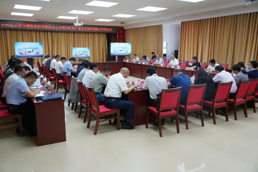 李红胜就建设中药材基地,推动中药产业技术协同发展介绍相关情况。随后,师市、团场及湖南省科学技术事务中心各方人员就中药产业发展事宜进行协商。