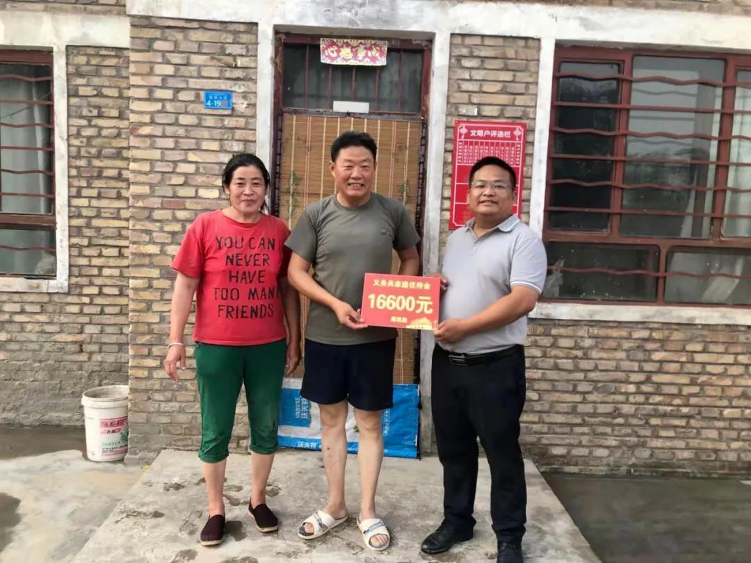 在现役军人家属杨洋家中,肖飞为他送上了义务兵优待金,并亲自为他们挂了光荣之家的牌子。感谢他们为国家、为部队培养了优秀人才,希望他们继续鼓励孩子认真服役,苦练军事本领,争取为国防建设贡献自己的力量。