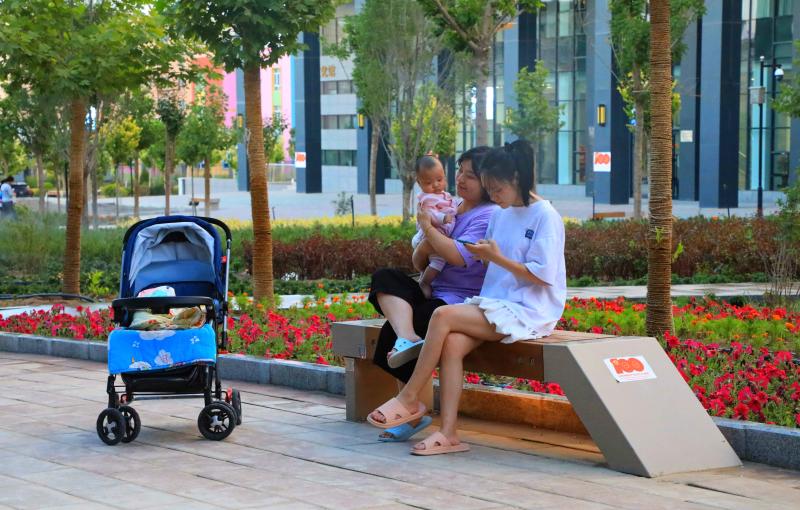 “这里体育馆、图书馆、电影院一应俱全,现在还安装了路灯、洗手亭、长椅等公共设施,休闲娱乐非常方便。这个长椅坐下去后会自动播放音乐,刚刚体验了一把无线充电,感觉非常得智能。”居民吴付群每天下班后都会带着孩子和家人到文化传媒中心散步。