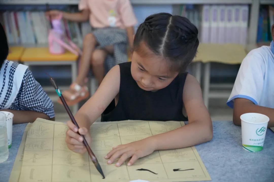 闫依娜是一名一年级学生,平时她就对写毛笔字非常感兴趣,在课堂上也认真听老师讲解,一笔一划跟随老师指引写下了许多简单的字。“我希望自己能够在书画班学有所获,让自己的暑假生活更加充实。”闫依娜说。