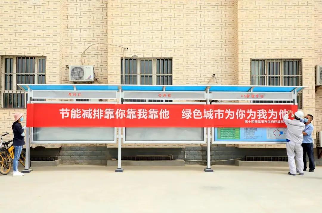 师市生态环境局在和田青松建材有限公司通过悬挂横幅、面对面讲解等方式,向企业员工宣传低碳知识,提升节能意识。 师市融媒体中心记者 高小霞 摄