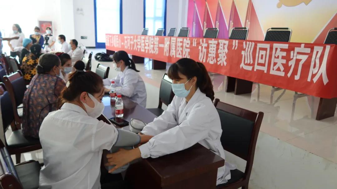 (石河子大学医学院第一附属医院的专家和医生们为周边百姓开展免费义诊服务。)