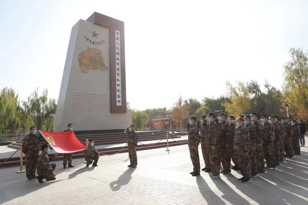 在四十七团中国人民解放军进军和田纪念碑前,全体学员手握右拳重温入党誓词,“我志愿加入中国共产党……”朗朗的誓言铿锵有力。学员吕莹说:“先辈们冒着千难万险,舍生忘死,用双脚征服了‘死亡之海’。我们应该传承好老兵精神,为我们师市的发展贡献一份力。”