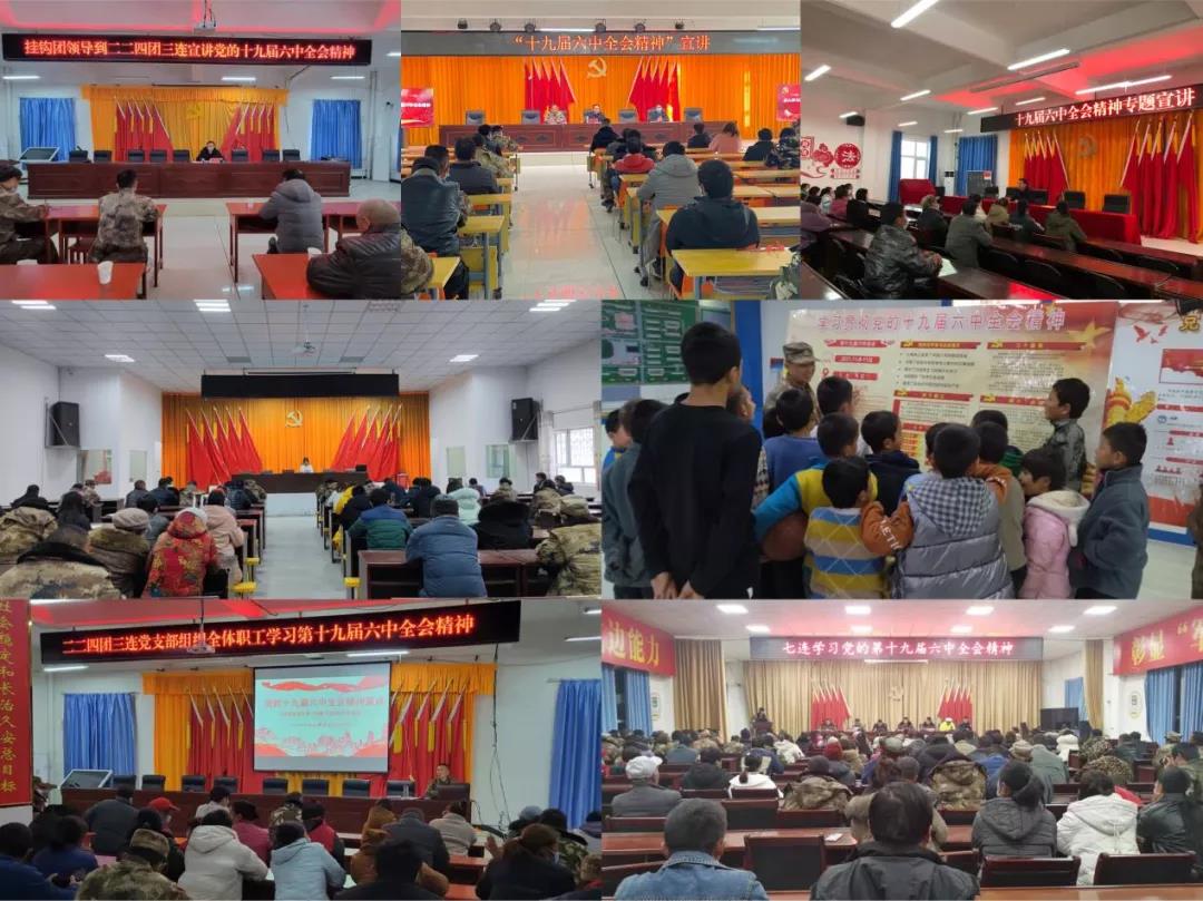 二二四团党委把学习宣传贯彻党的十九届六中全会精神作为当前首要政治任务,召开党委常委会、党委理论学习中心组(扩大)学习会议,专题学习党的十九届六中全会精神。先后集体学习了《中国共产党第十九届中央委员会第六次全体会议公报》、党的十九届六中全会精神新闻发布会重点内容、习近平关于《中共中央关于党的百年奋斗重大成就和历史经验的决议》的说明,参学党员干部结合工作实际,开展专题讨论交流,分享了个人学习体会。