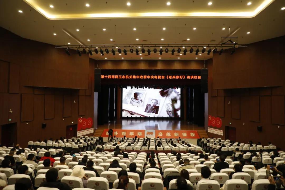 第十四师昆玉市机关集中观看中央电视台《老兵你好》访谈栏目