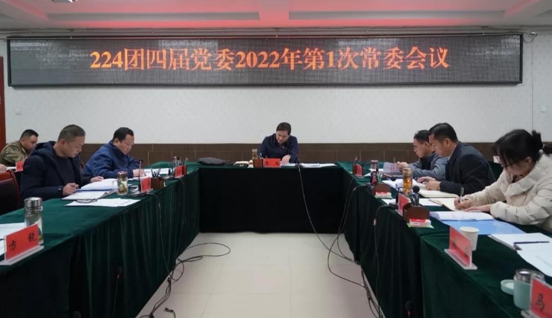 1月3日,二二四团四届党委召开2022年第1次常委会议,二二四团党委书记、政委肖飞主持会议。