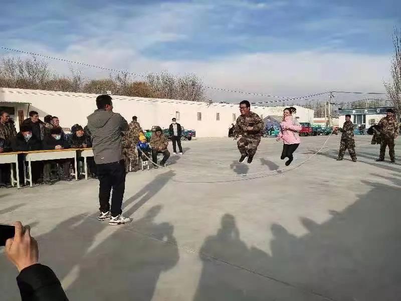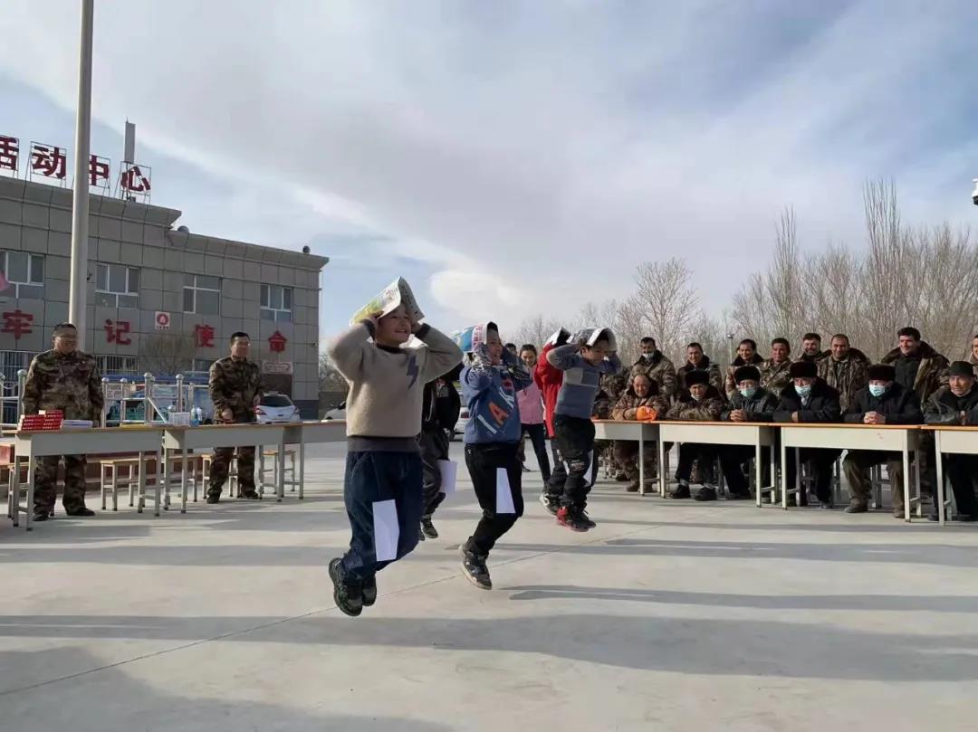 此次运动会设计有诗歌朗诵、单人跳绳、拔河、集体跳绳、夹纸传杯、抢凳子等项目。活动一开始,连队老老少少齐上阵,互相鼓劲,加油声、呐喊声一浪高过一浪,参赛者和观众们的脸上都挂满了开心的笑容。