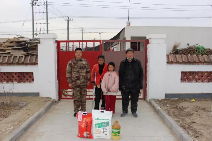 四连党支部书记赵小良与老许大肉店老板许金良一起来到冉子春家中,不仅为他们每家送去了食用油、大米、面粉等慰问品,更送上对困难家庭的关怀与美好祝福,让他们感受到四连这个大家庭的温暖。冉子春表示非常感谢连队党支部、感谢许金良为他们一家人所做的一切,相信在连队党支部和商户的帮助下,自己一定可以克服生活上遇到的困难,并要教育自己孩子长大后一定要感恩于社会。