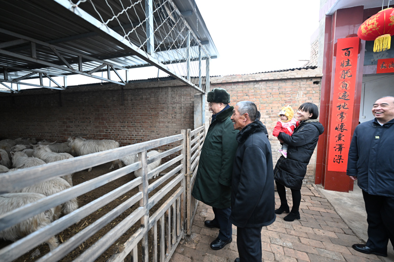 1月26日至27日,中共中央总书记、国家主席、中央军委主席习近平来到山西,看望慰问基层干部群众。这是26日下午,习近平在临汾市汾西县僧念镇段村蔡文明家察看羊圈。新华社记者 李学仁 摄