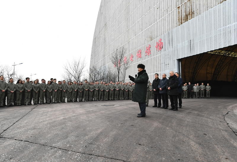 1月26日至27日,中共中央总书记、国家主席、中央军委主席习近平来到山西,看望慰问基层干部群众。这是27日下午,习近平在山西瑞光热电有限责任公司储煤场察看煤场储煤情况。新华社记者 谢环驰 摄