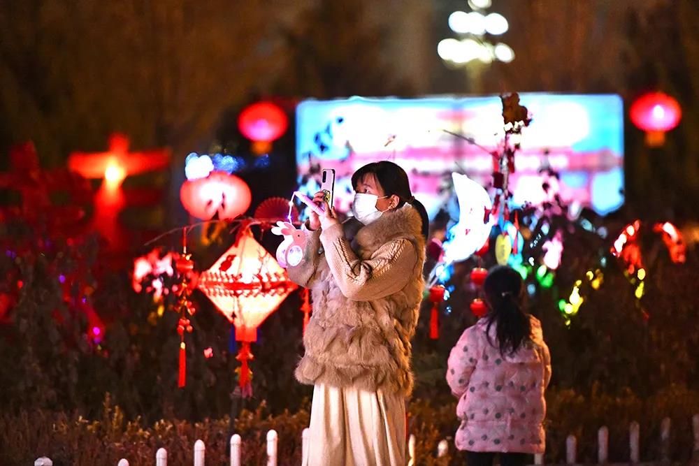 昆玉市民欣赏着绚丽多彩的花灯,在欢度佳节的同时,也感受着传统文化的魅力。