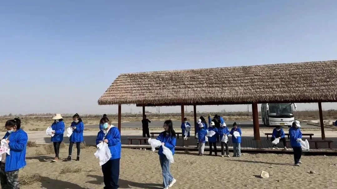 随后,志愿者们来到距离团部约5公里处的老兵驿站,开始了洁净沙漠志愿服务活动,他们将散落在沙漠中的易拉罐、矿泉水瓶、塑料袋等生活垃圾一一捡起,“沙海老兵路”焕然一新。
