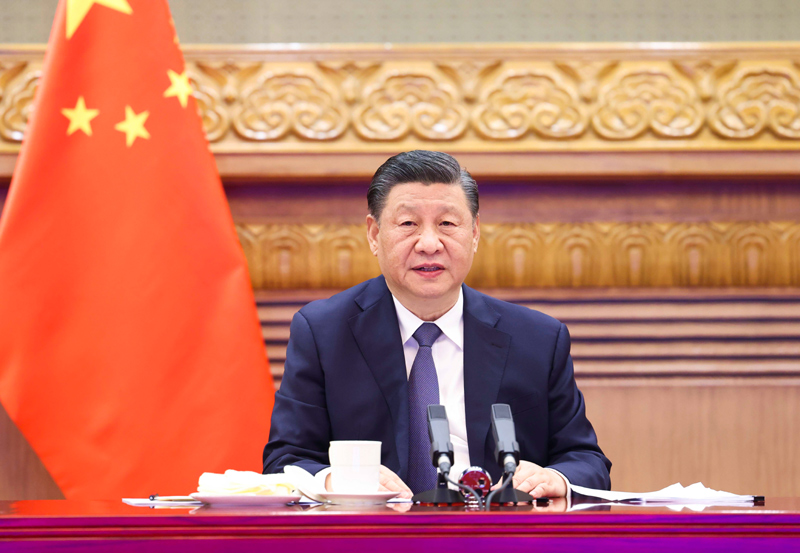 3月18日晚,国家主席习近平在北京应约同美国总统拜登视频通话。新华社记者 黄敬文 摄